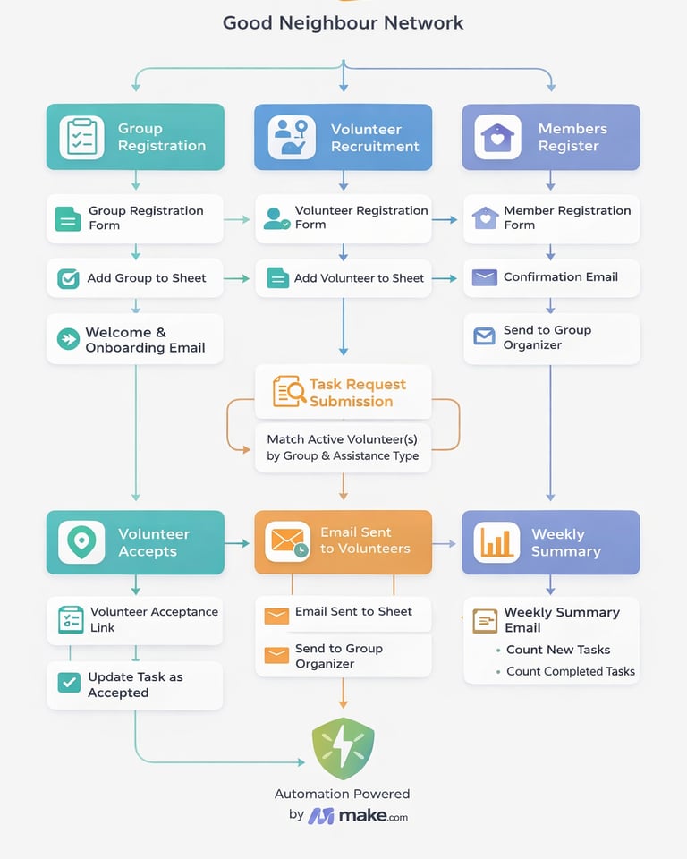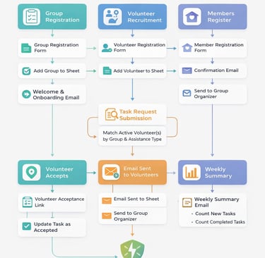 Email Sent to Matching Volunteers and to group administrator.